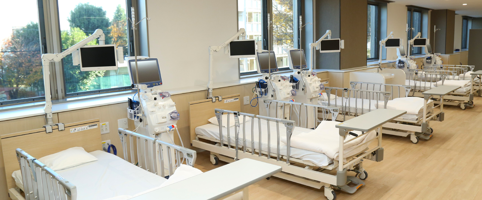 外来透析・旅行透析に加え、透析治療にまつわる様々な合併症への対応や慢性期の長期療養・リハビリ治療の提供等様々なニーズに対応できるよう入院医療体制も整えております。